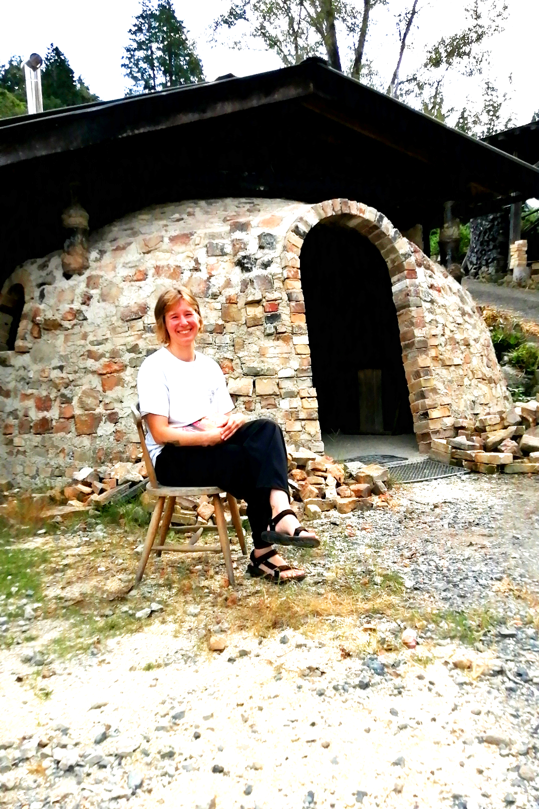 改築のデザイン、基礎のコンクリート流しから、築窯師の経験を活かし、実際に登り窯で使われていたレンガと土を使用し壁を作りました。